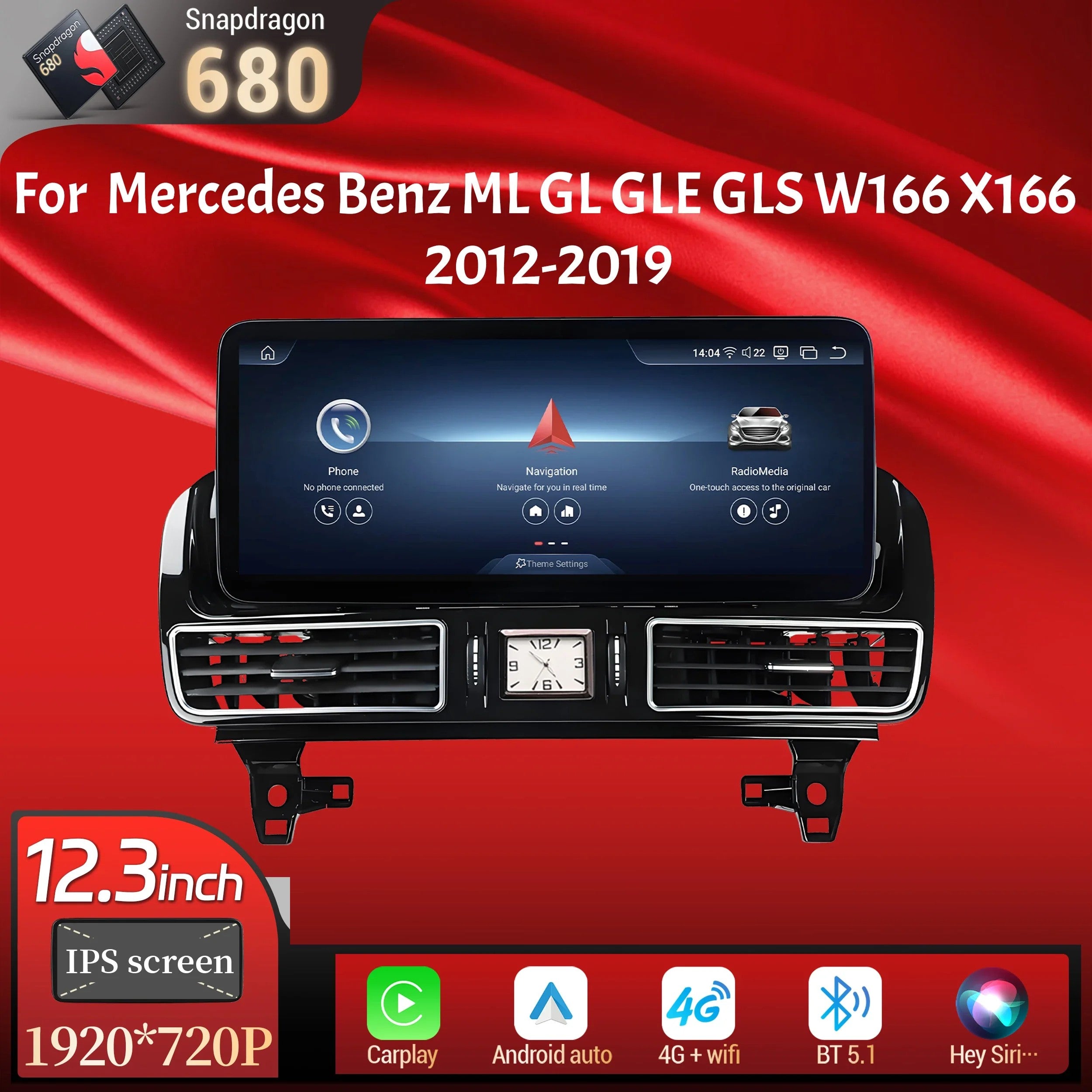 12.3inch Car Radio For Mercedes Benz ML GL GLE GLS W166 X166 2012-2019 Android 14 Wireless Carplay Snapdragon 680 Touch Screen player 64+4gb quantity