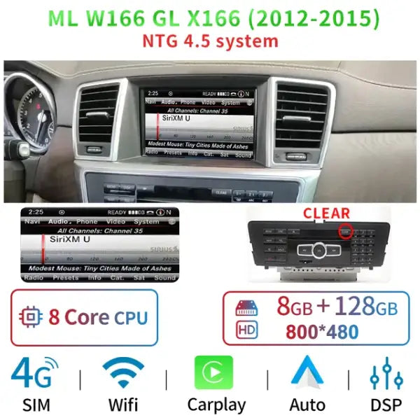 Android Car Multimedia Player GPS Navigation Radio for Mercedes Benz ML W166 GL X166 2012-2015 BT IPS Touch Screen Auto Carplay