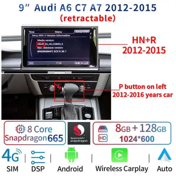 AUDI A6 C7 A7 2011-2018 WIFI 4G 4+64GB RAM CARPLAY 9 INCH IPS TOUCH SCREEN GPS NAVI CAR ANDROID PLAYER