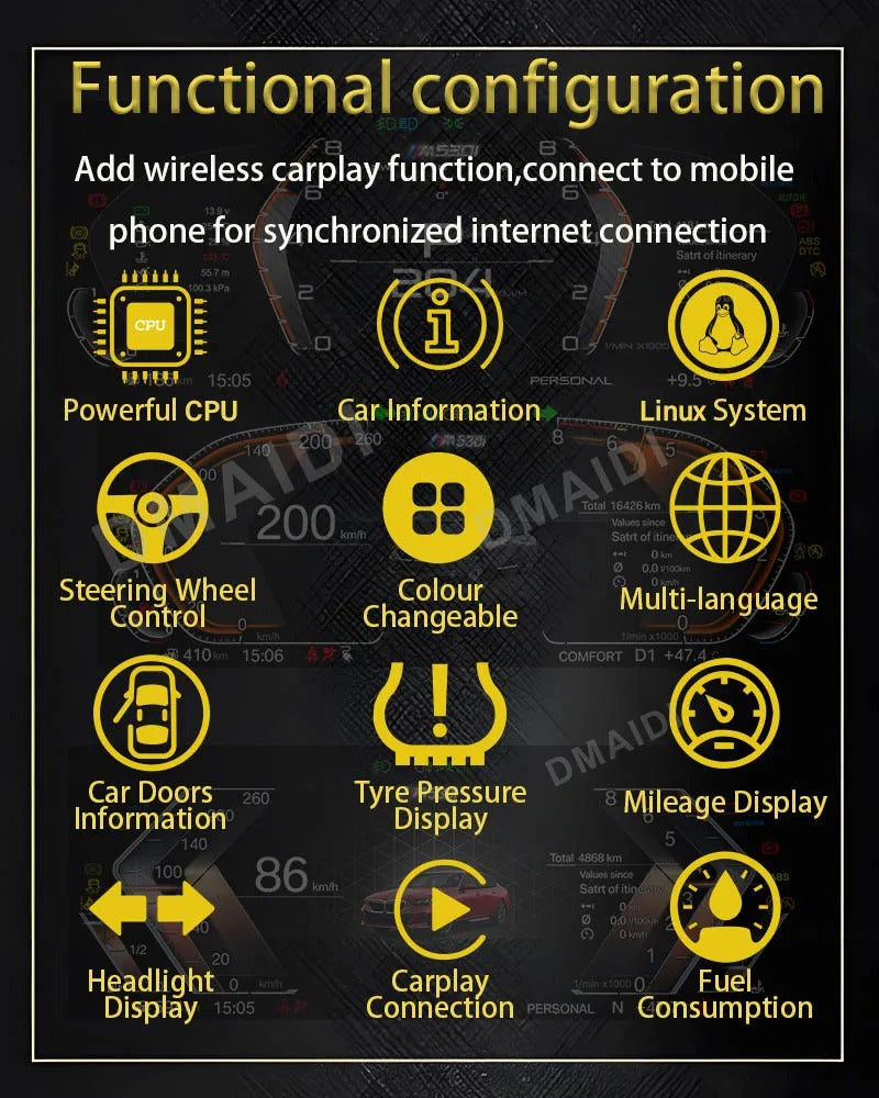 BMW 1 2 3 4 5 6 7 X1 X3 X4 X5 X6 X7 Z4 F10 F20 F30 F34 F12 F02 F48 F25 F26 F15 F16 E60 E70 E90 E84 E89 ANDROID DIGITAL INSTRUMENTAL CLUSTER SPEEDOMEETER WITH CARPLAY