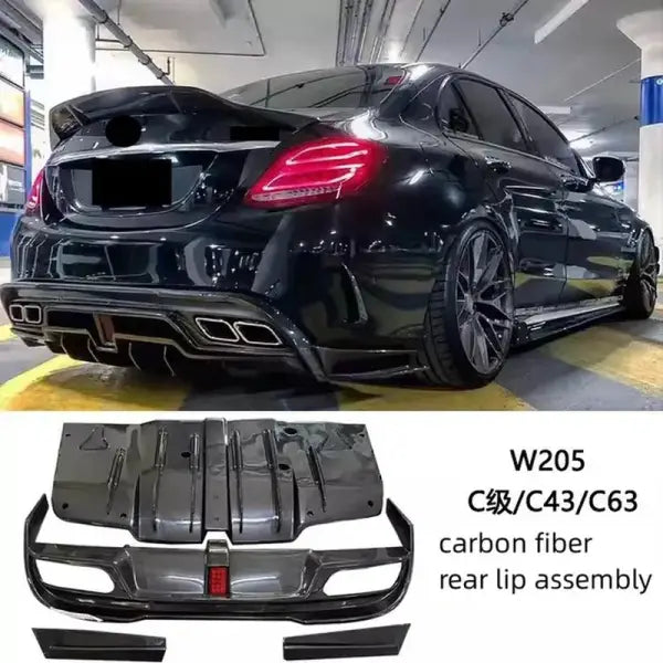 Body Kit for Mercedes-Benz C-Class W205 C43 C63 Wide Body Modified Front Rear Bumper Tail Wing Rear Lip Assembly Auto Accessories