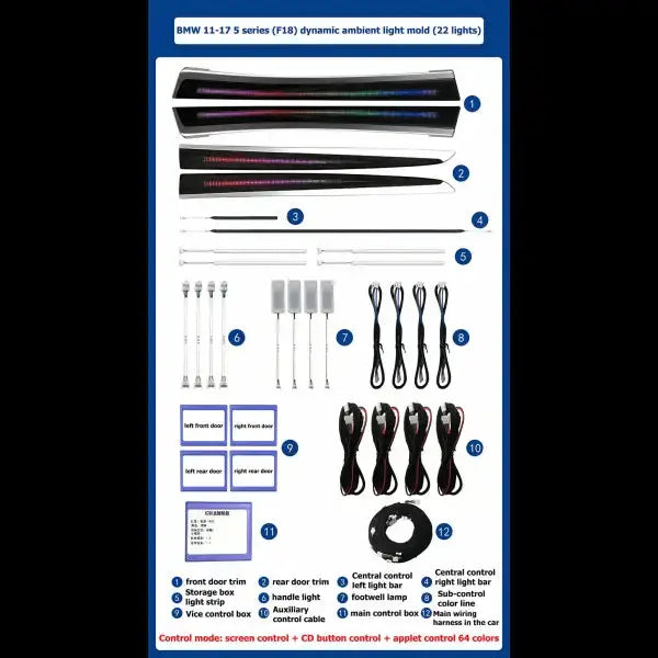 Car Interior Decorate Atmosphere Light Led Strip Ambient Light for BMW 5 Series F18 2011-2017 quantity