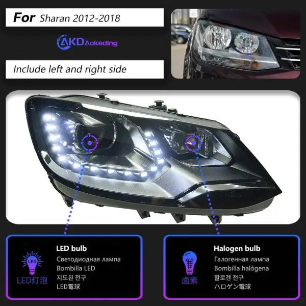 Car Styling Head lamp light for Sharan Headlights 2012-2020 Sharan LED Headlight MPV DRL Hid Angel Eye Bi Xenon Beam Accessories