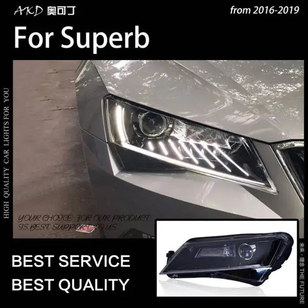 Car Styling Head lamp light for Superb Headlights 2016-2019 Superb LED Headlight DRL LED Projector Lens quantity