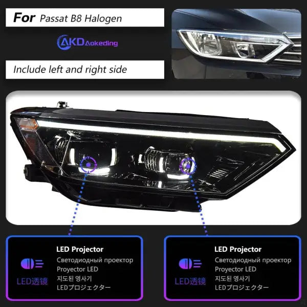 Car Styling Head lamp light for VW Passat B8 LED Headlight Projector Lens 2015-2019 Magotan Angel Eye Headlights DRL Automotive