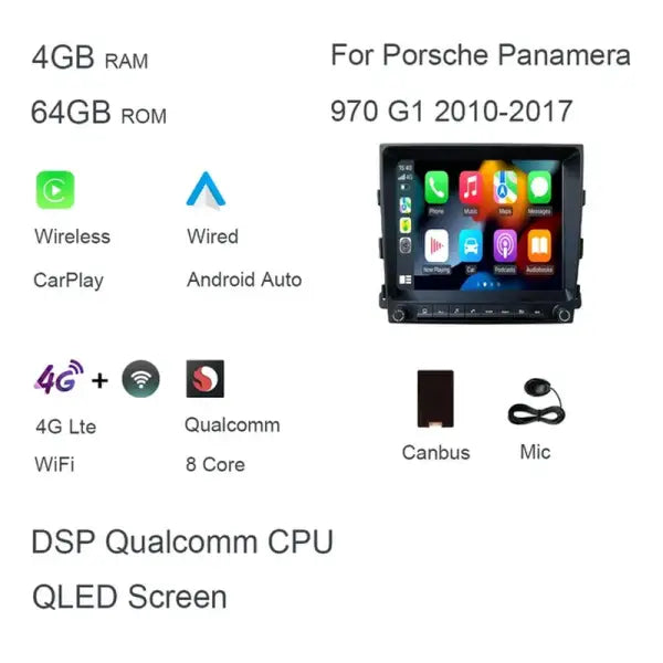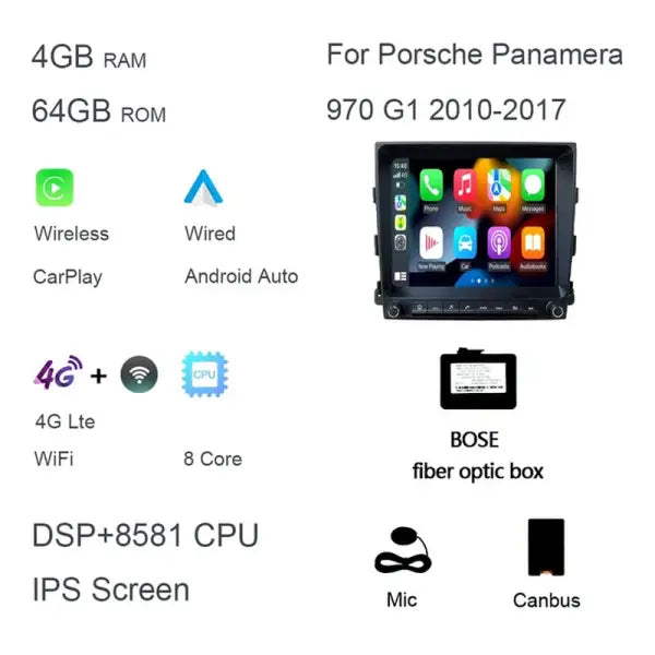 Carplay DSP Car DVD Player Android 12.0 8Core 8GB+128G Radio GPS Wifi Multimedia for Porsche Panamera 970 G1 2010-2017 2012 2015 4Gb 64Gb Car 4G