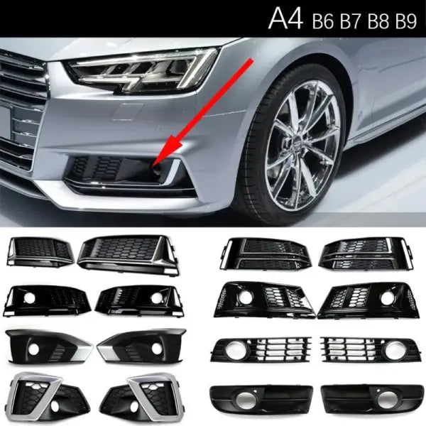 Compatible With Audi A4l B9 Fog Lamp Grill Frame Cover 2019 Sport Plating Matt Black Chrome CC-3270