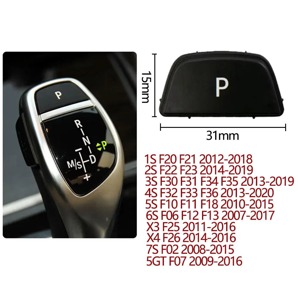 Compatible With Bmw 1 2 3 4 5 6 7 Series F20 F30 F34 F10 F07 F06 F12 F01 F02 X3 X4 F25 F26 X5 X6 F15 F16 Gear Shift Lever Auto Parking Switch Letter P Button Cover Model B Black CC-8625