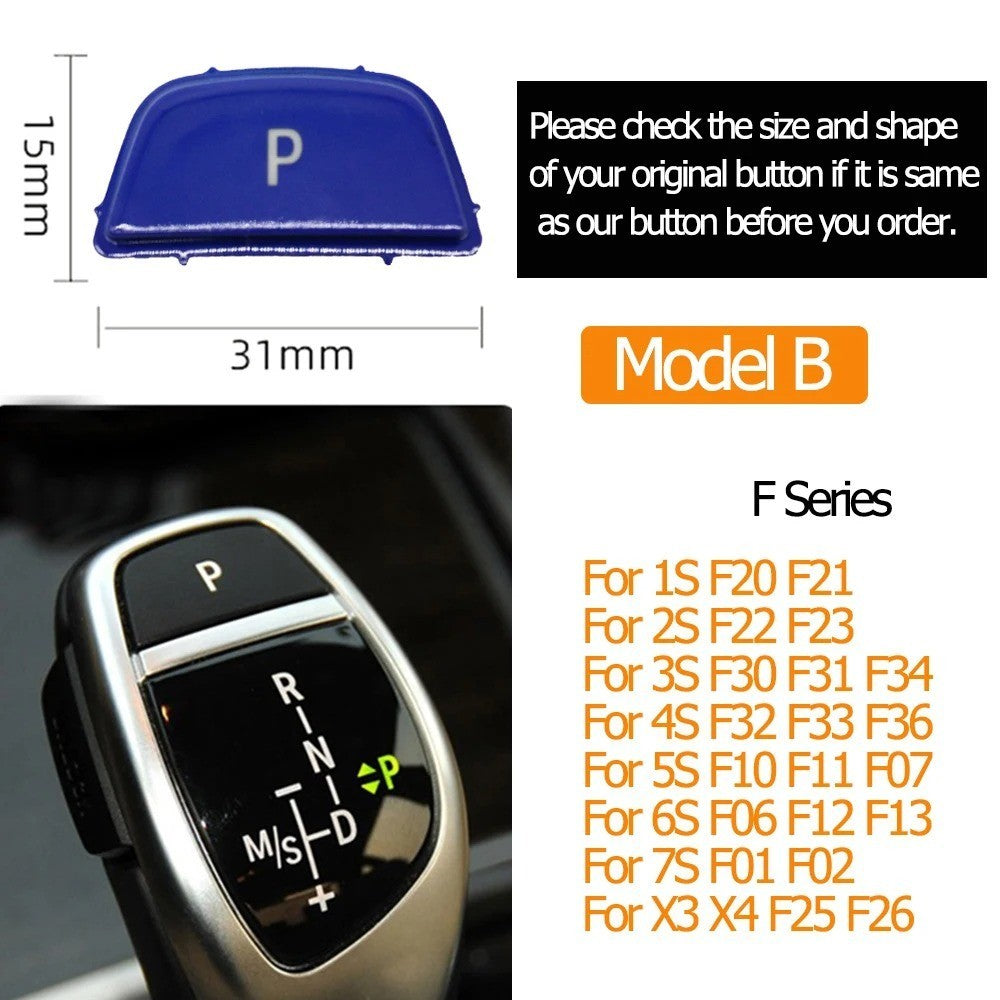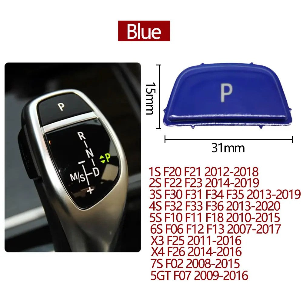 Compatible With Bmw 1 2 3 4 5 6 7 Series F20 F30 F34 F10 F07 F06 F12 F01 F02 X3 X4 F25 F26 X5 X6 F15 F16 Gear Shift Lever Auto Parking Switch Letter P Button Cover Model B Blue CC-8623