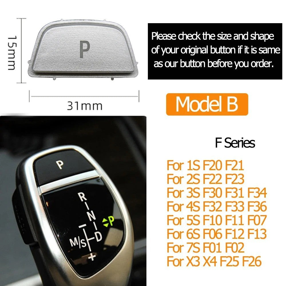 Compatible With Bmw 1 2 3 4 5 6 7 Series F20 F30 F34 F10 F07 F06 F12 F01 F02 X3 X4 F25 F26 X5 X6 F15 F16 Gear Shift Lever Auto Parking Switch Letter P Button Cover Model B Silver CC-8622