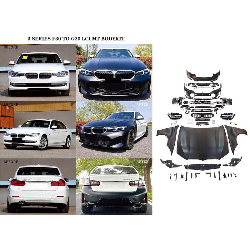 Compatible With Bmw 3 Series F30 2012-2018 To G20 Lci M Sports Mt Mtech Upgrade Facelift Conversion Hood Fender Bodykit Bumper Headlight Helogen CC-6332