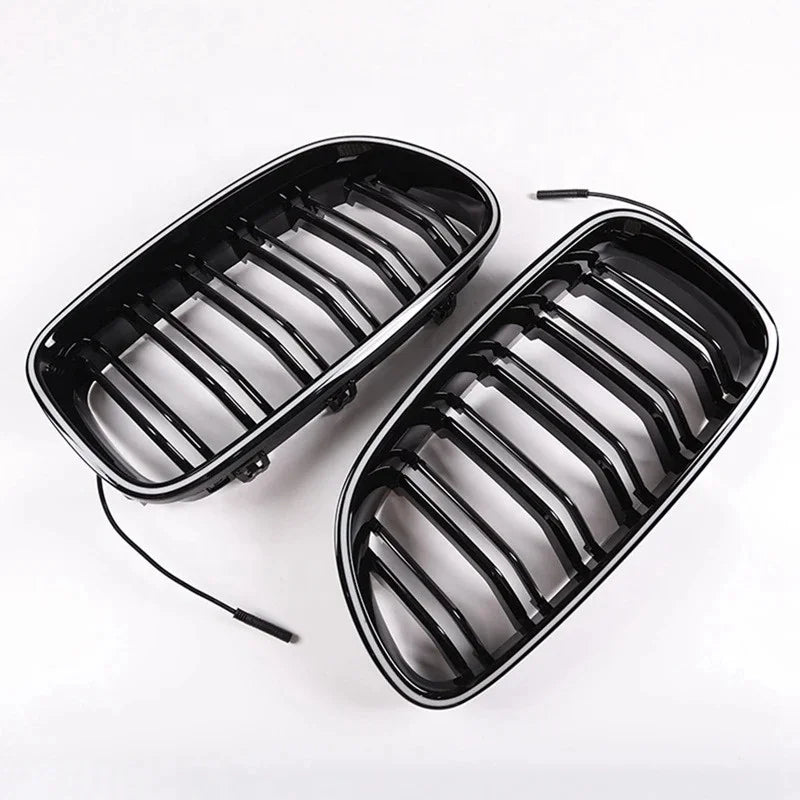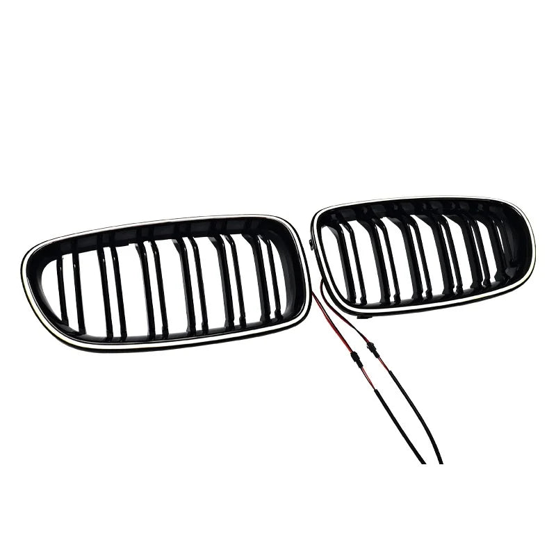 Compatible With Bmw 5 Series F10 F18 2010-2017 Front Bumper Luminous Illuminated Led Glow Grill Dual Slate Black CC-5374-16