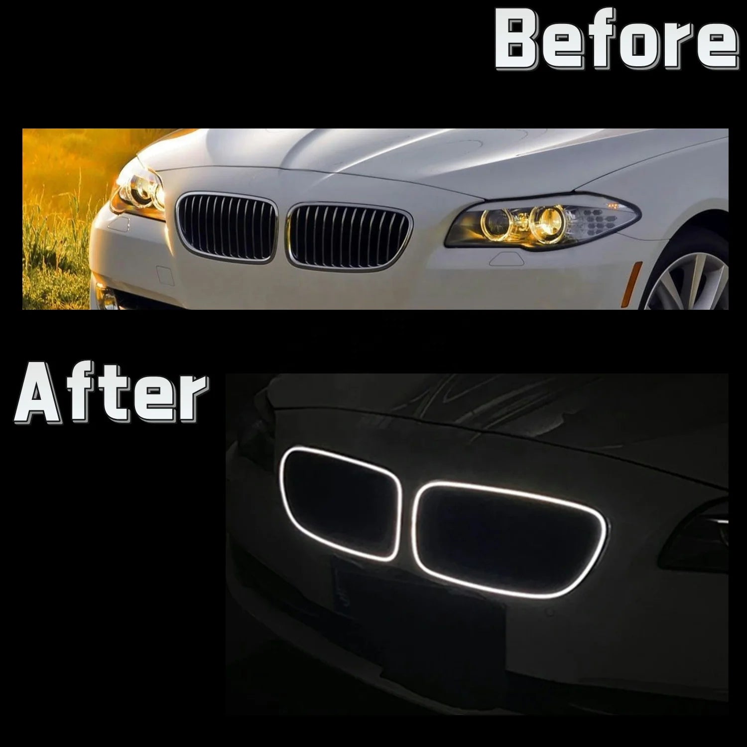 Compatible With Bmw 5 Series F10 F18 2010-2017 Front Bumper Luminous Illuminated Led Glow Grill Dual Slate Black CC-5374-16 quantity