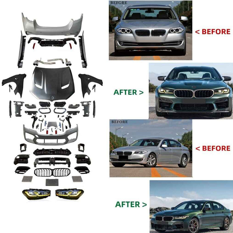 Compatible With Bmw 5 Series F10 F18 2010-2017 To 2021+ G30 G38 F90 Lci M5 M Sports Csm5 Upgrade Facelift Conversion Cs Hood Fender Bodykit Bumper Yellow Drl Headlight CC-9720