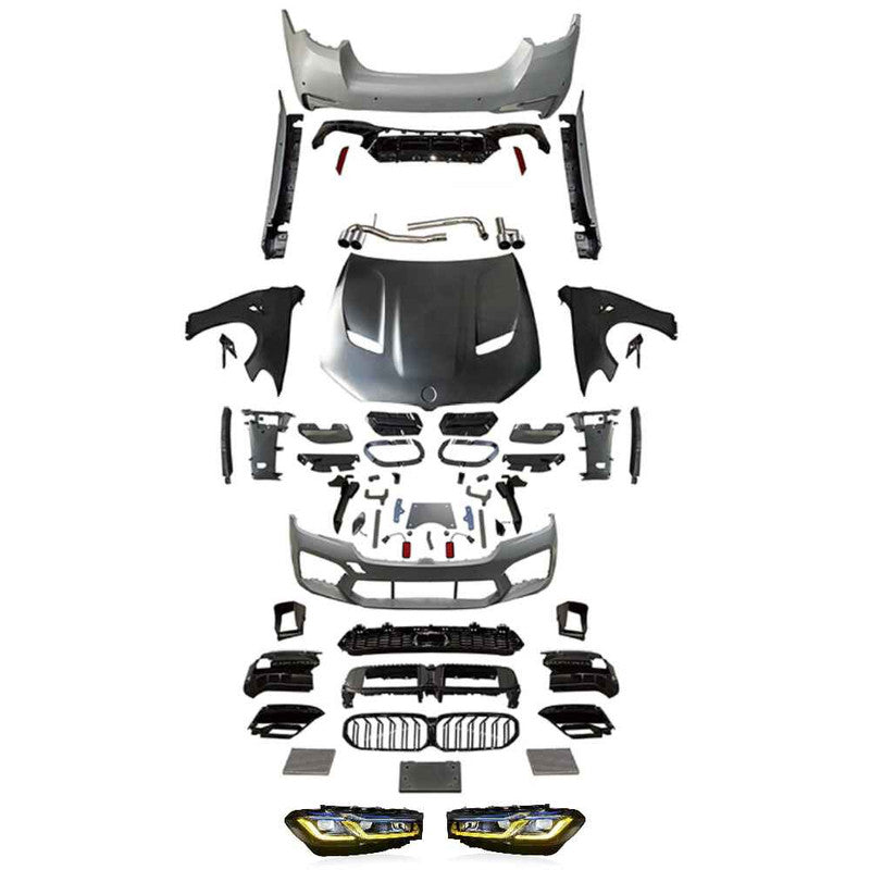 Compatible With Bmw 5 Series F10 F18 2010-2017 To 2021+ G30 G38 F90 Lci M5 M Sports Csm5 Upgrade Facelift Conversion Cs Hood Fender Bodykit Bumper Yellow Drl Headlight CC-9720