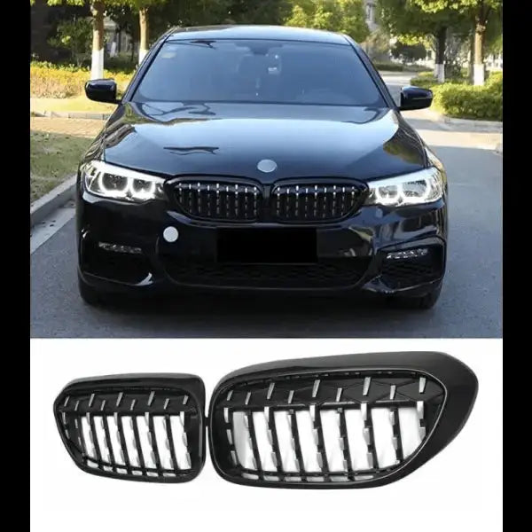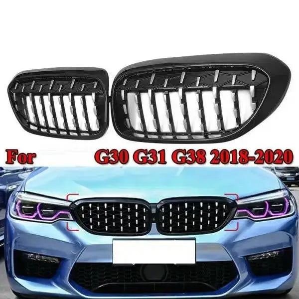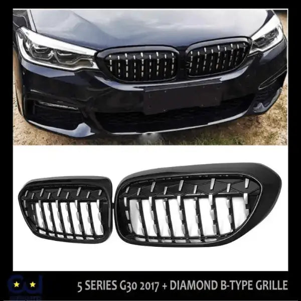 Compatible With Bmw 5 Series G30 2017-2020 Front Bumper Grill Diamond Chrome And Black Single CC-1579