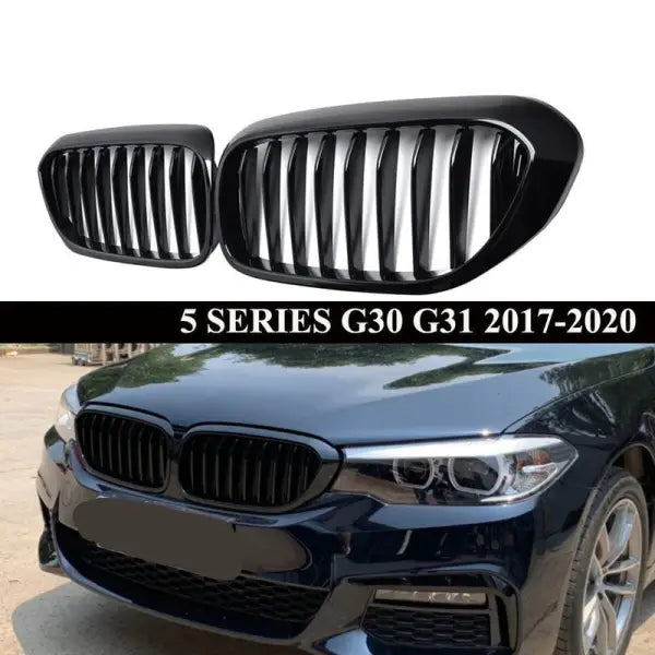 Compatible With Bmw 5 Series G30 2017-2021 Front Bumper Show Grill Glossy Black Single Line CC-3044