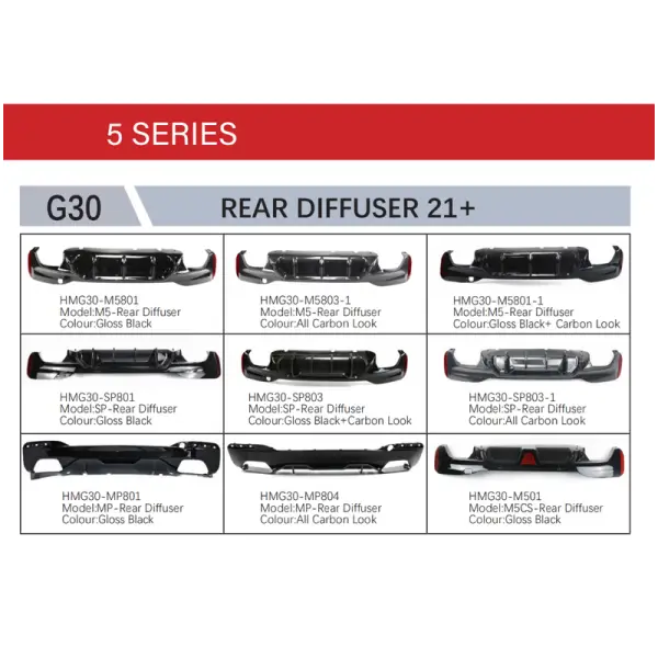 Compatible With Bmw 5 Series G30 Lci 2021+ Rear Bumper Lip Rear Diffuser M5 M Sports M Performance M Sports M5cs g30 Lci After Lip Black And Cf Look M5 AR-BMW-0192 CC-3029