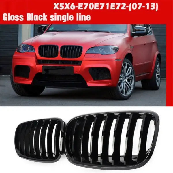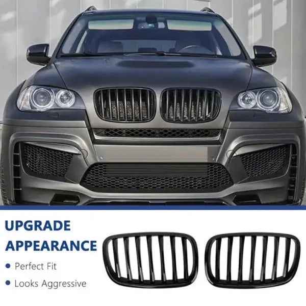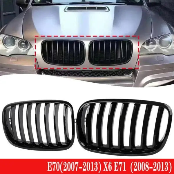 Compatible With Bmw X5 E70 X6 E71 2006-2014 Front Bumper Show Grill Glossy Black Single CC-3117