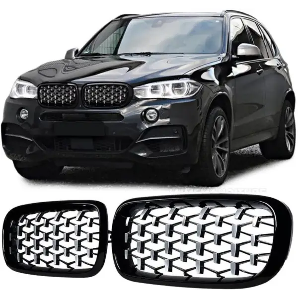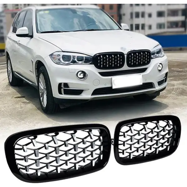Compatible With Bmw X5 F15 X6 F16 2015-2019 Front Bumper Show Grill Diamond Black Silver Without Camear Hole CC-3121 quantity