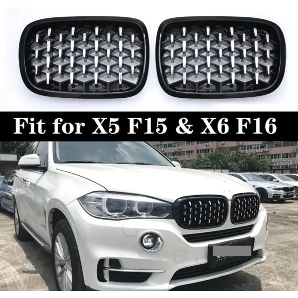 Compatible With Bmw X5 F15 X6 F16 2015-2019 Front Bumper Show Grill Diamond Black Silver Without Camear Hole CC-3121
