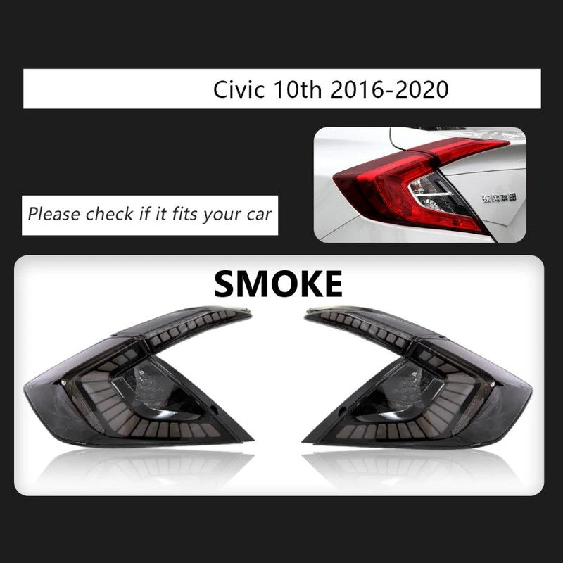 Compatible With Honda Civic 10th Gen 2016-2020 Car Rear Upgraded Tail Light Lamp Xenon Taillight Retrofit Upgrade Modified Led Drl Hid E Smoke CC-6537