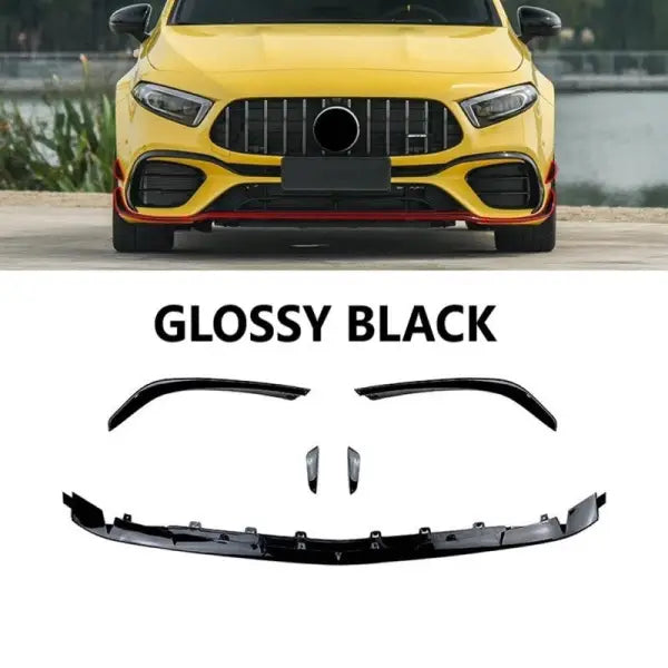 Compatible With Mercedes Benz A Class W177 2018+ Amg Bumper Front Splitter Lip Canards Skirts Flag 5 Part Zst-532a Zst-532bc Zst-113d Glossy Black CC-3748 quantity
