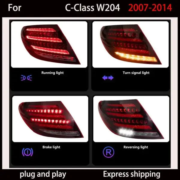 Compatible With Mercedes Benz C Class W204 2007-2014 car Rear Upgraded Tail Light Lamp Xenon Taillight Retrofit Upgrade Modified Led Drl Hid Laser Red Maybach Style CC-5761