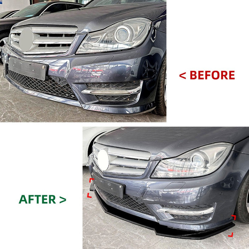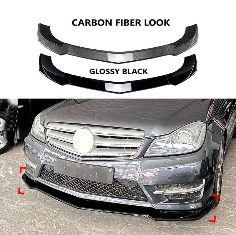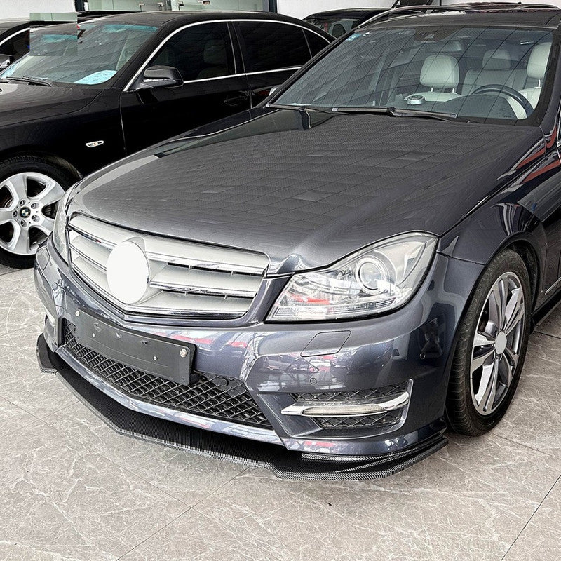 Compatible With Mercedes Benz C Class W204 2011-2014 Amg Front Bumper Lip Splitter Diffuser Skirts Flag Canard Carbon Fiber Look Zst-807 Cf CC-6136