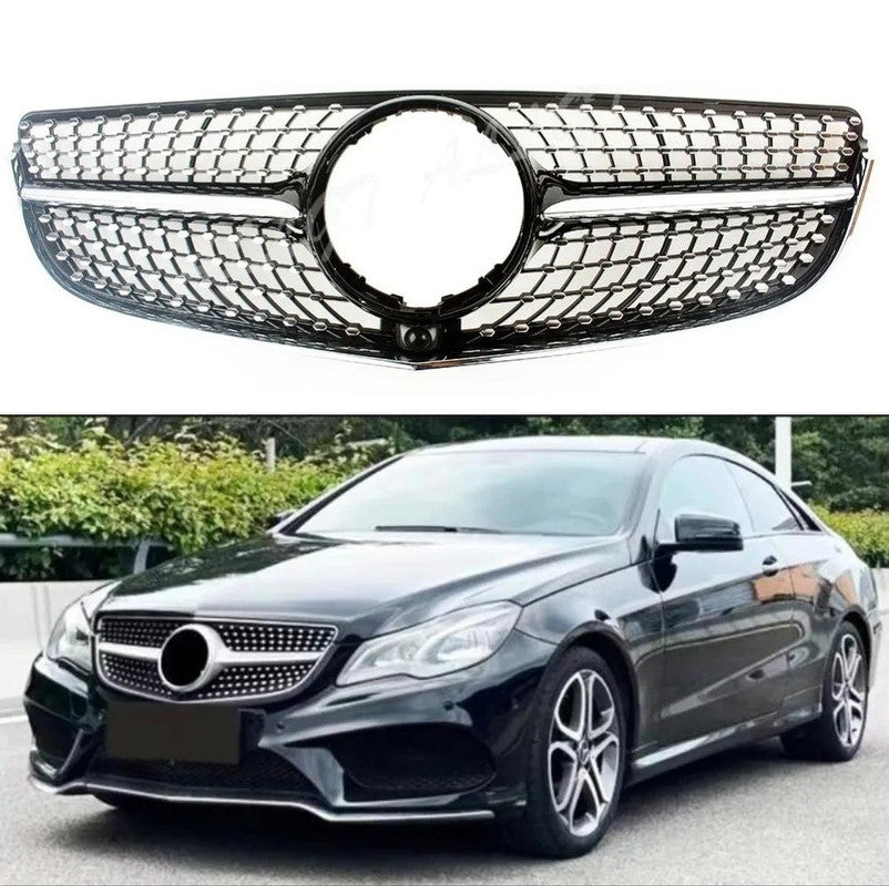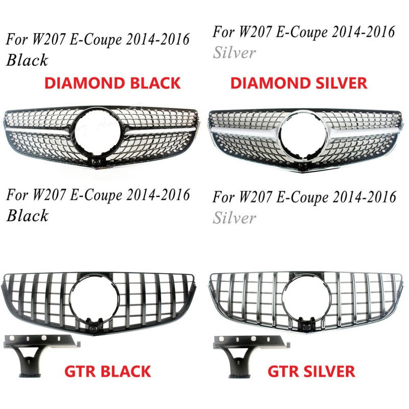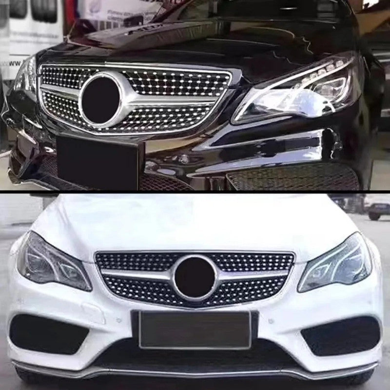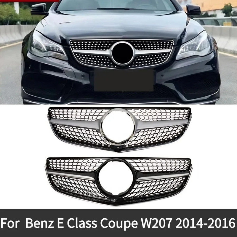 Compatible With Mercedes Benz E Class Coupe W207 Lci 2014-2016 Car Front Racing Bumper Show Grille Diamond Silver CC-8600