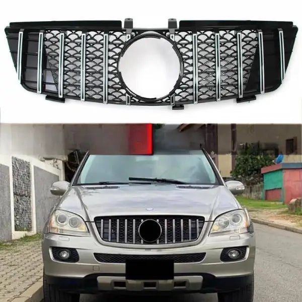 Compatible With Mercedes Ml W164 2005-2008 Sports Gt Amg Front Bumper Panamericana Grill W164 Grill Gtr Silver CC-1797