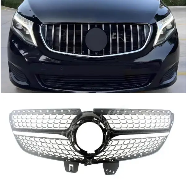 Compatible With Mercedes V Class W447 Lci 2020+ Front Bumper Show Grill Diamond Black CC-3157