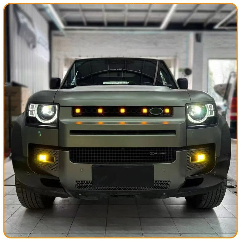 Compatible With Range Land Rover Defender 90 110 130 2020+ Front Bumper Show Led Grille With Light Octa Style Yellow CC-8926
