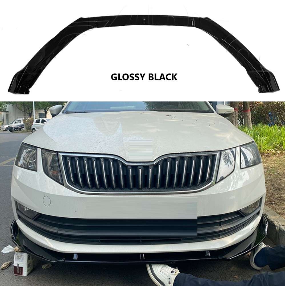 Compatible With Skoda Octavia 2017-2022 Front Bumper Lip Splitter Skirts 3 Part Ar-skoda-021 Glossy Black CC-8404