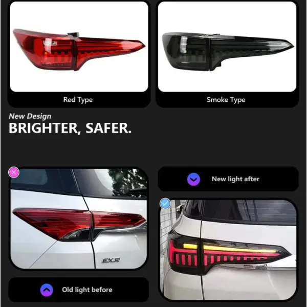 Compatible With Toyota Fortuner 2016-2019 Car Rear Upgraded Tail Light Lamp Xenon Taillight Retrofit Upgrade Modified Led Drl Hid Diamond Smoke Style CC-5736