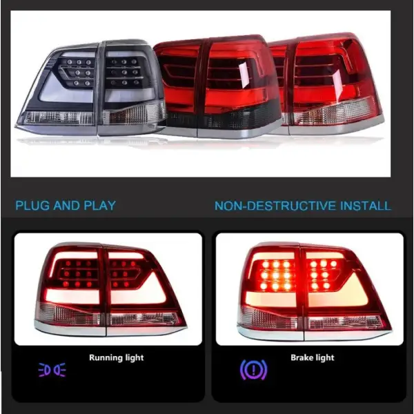 Compatible With TOYOTA LAND CRUISER LC200 2008-2015 Upgraded Tail Light Lamp Xenon Taillight Retrofit Upgrade Modified Led Drl Hid BLACK RED CC-5273