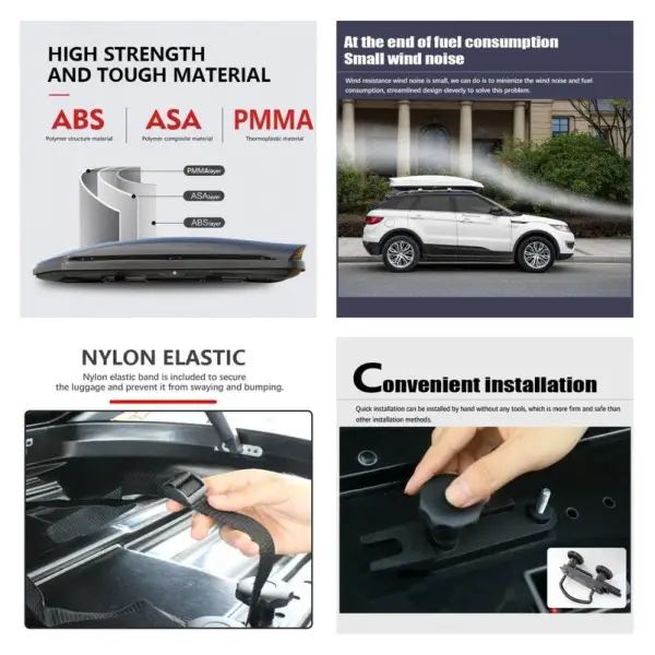 Compatible With Universal Car Large Capacity Car Roof Luggage Storage Box Aerodynamic Design Waterproof Roof Cargo Box Car Roof Top Cargo Boxes 600 Liter 174*82*36cm Black CC-5653 quantity