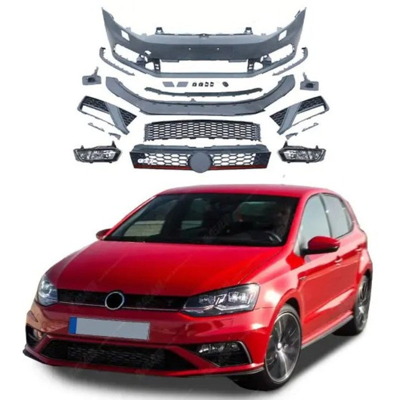 Compatible With Vw Volkswagen Polo 2010-2024 Upgrade Facelift Convert To Gti Line Style Front Bumper Bodykit Fog Lamp Light Grill Mesh Front CC-7222