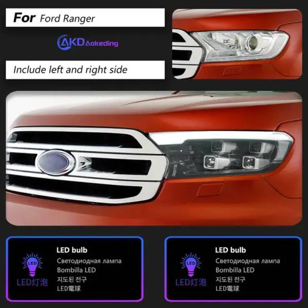 Ford Ranger Headlight 2016-2017 Everest Endeavor LED Head lamp light H7 D2H Hid Option Angel Eye Bi Xenon Beam