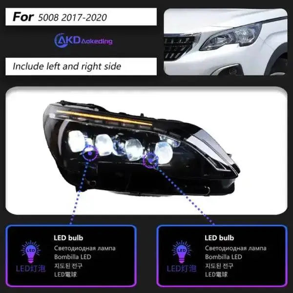 Head lamp light for Peugeot 3008 5008 LED Headlight 2017-2020 Headlights 4008 5008 DRL Turn Signal High Beam Angel Eye Projector quantity