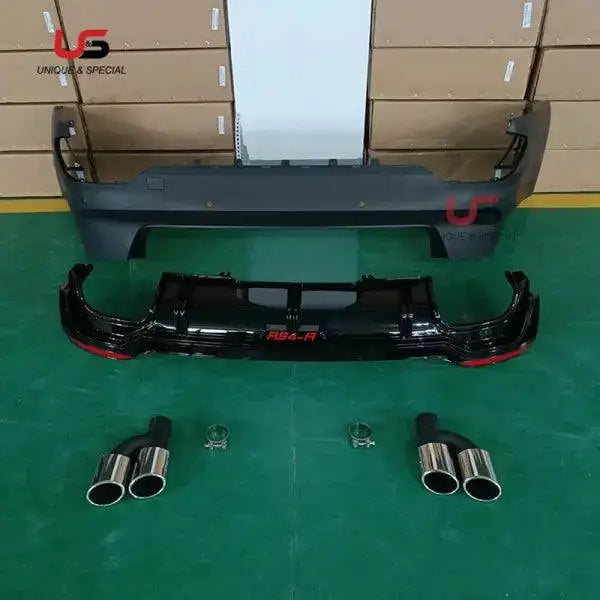 High Quality Auto Body Kit for Audi A4 B9 Modified to RS4 ABT Style Rear Bumper Diffuser with Exhaust Pipe Muffler Tip 2017-2019 quantity