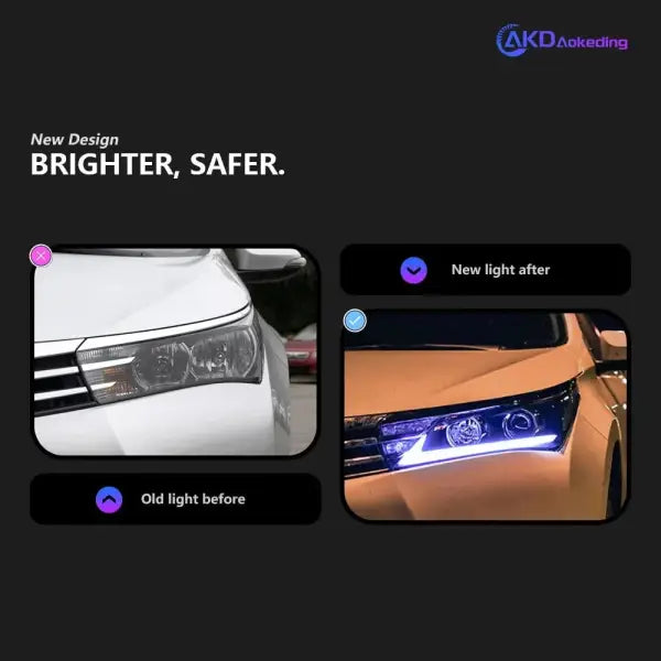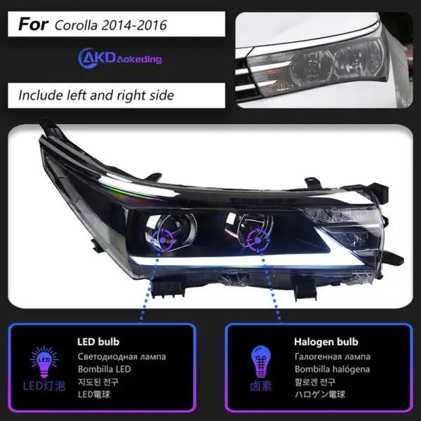 Toyota Corolla LED Headlight 2014-2016 Headlights Corolla DRL Turn Signal High Beam Angel E