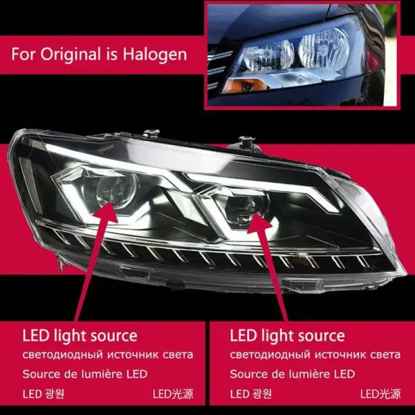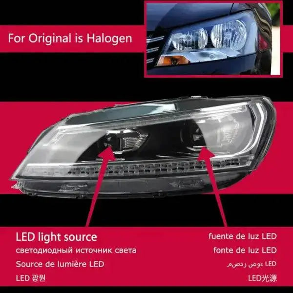 VW Passat B7 Headlights 2011-2016 LED Headlight DRL Hid Head lamp light Bi Xenon Projector Lens FOR HELOGEN LOW VERSION CAR